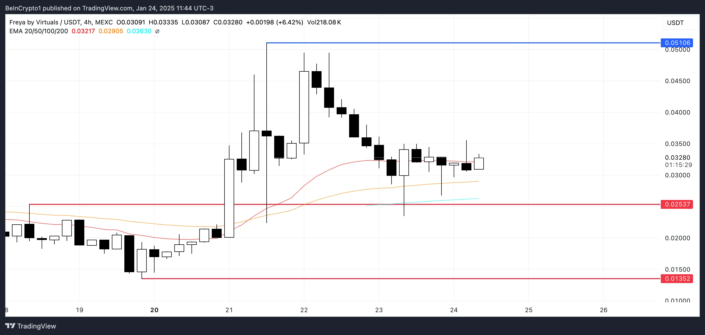 FREYA, запущенная два месяца назад на Base chain, работает на Virtuals Protocol, одной из крупнейших платформ для создания ИИ-агентов. За последние семь дней цена FREYA выросла на 47%, увеличив ее рыночную капитализацию до $21,5 млн. Однако сейчас токен корректируется, упав на 40% в последнюю пару дней, и его дневной объем торгов остается ниже $1 млн.